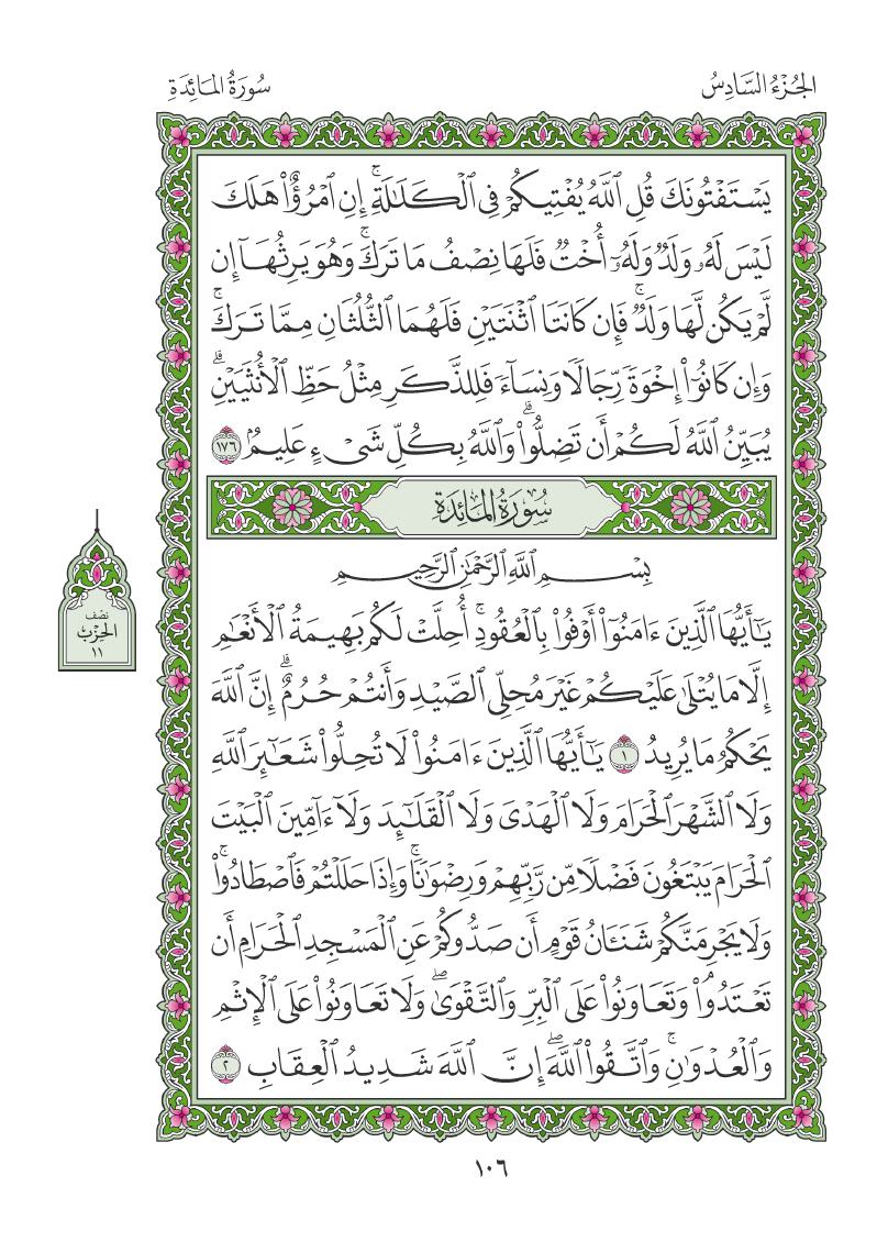 (Pg#106 Ayahs: 4:176 - 5:2)