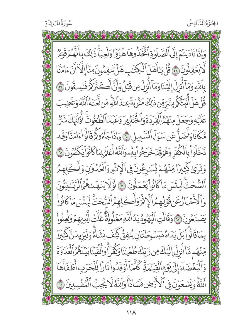 (Pg#118 Ayahs: 5:58 - 5:64)
