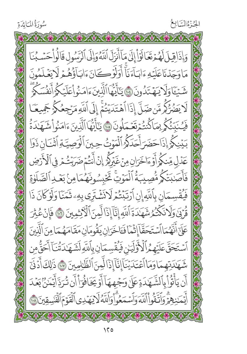 (Pg#125 Ayahs: 5:104 - 5:108)