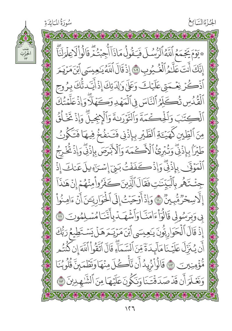 (Pg#126 Ayahs: 5:109 - 5:113)