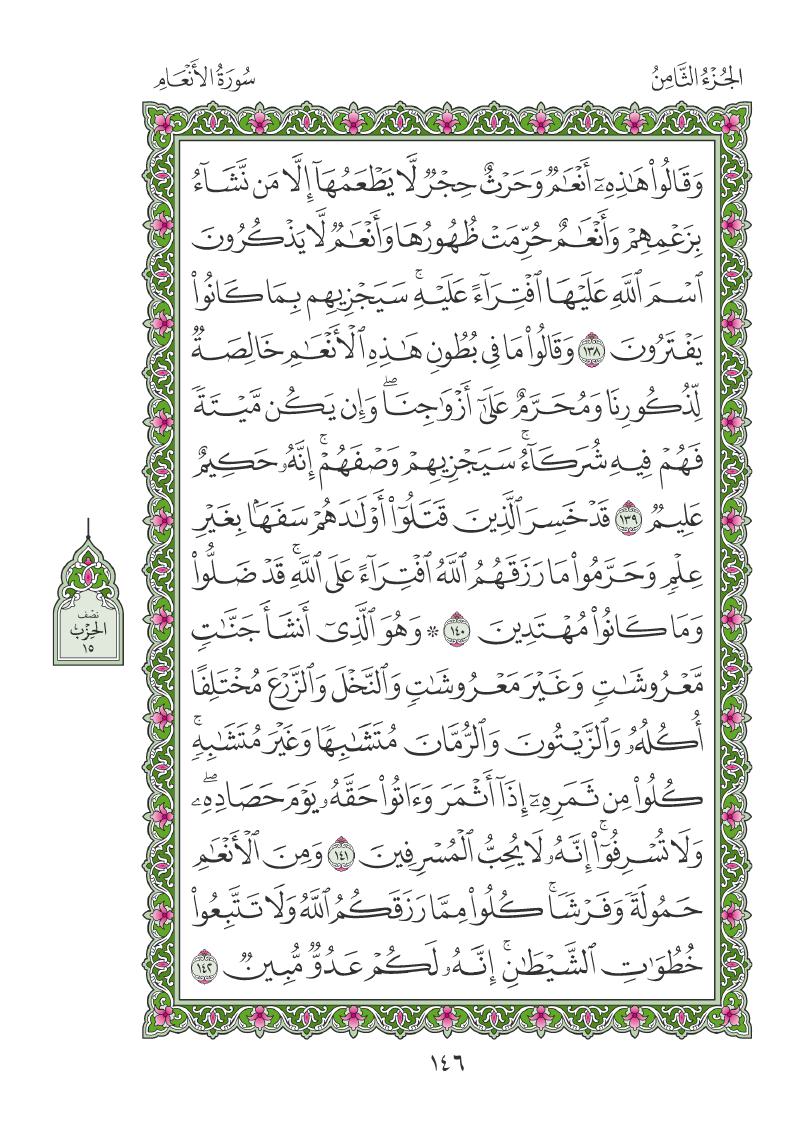 (Pg#146 Ayahs: 6:138 - 6:142)