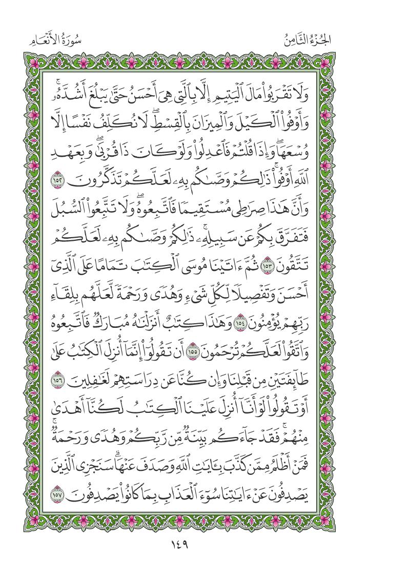 (Pg#149 Ayahs: 6:152 - 6:157)
