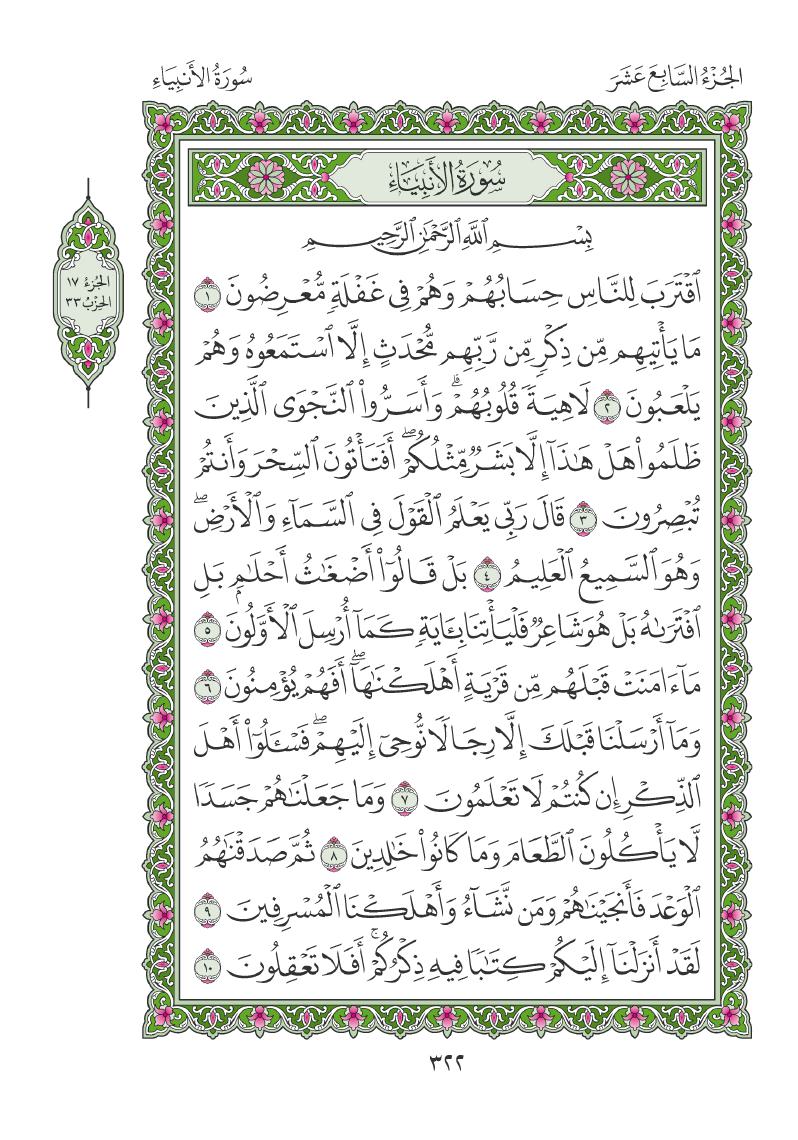 (Pg#322 Ayahs: 21:1 - 21:10)