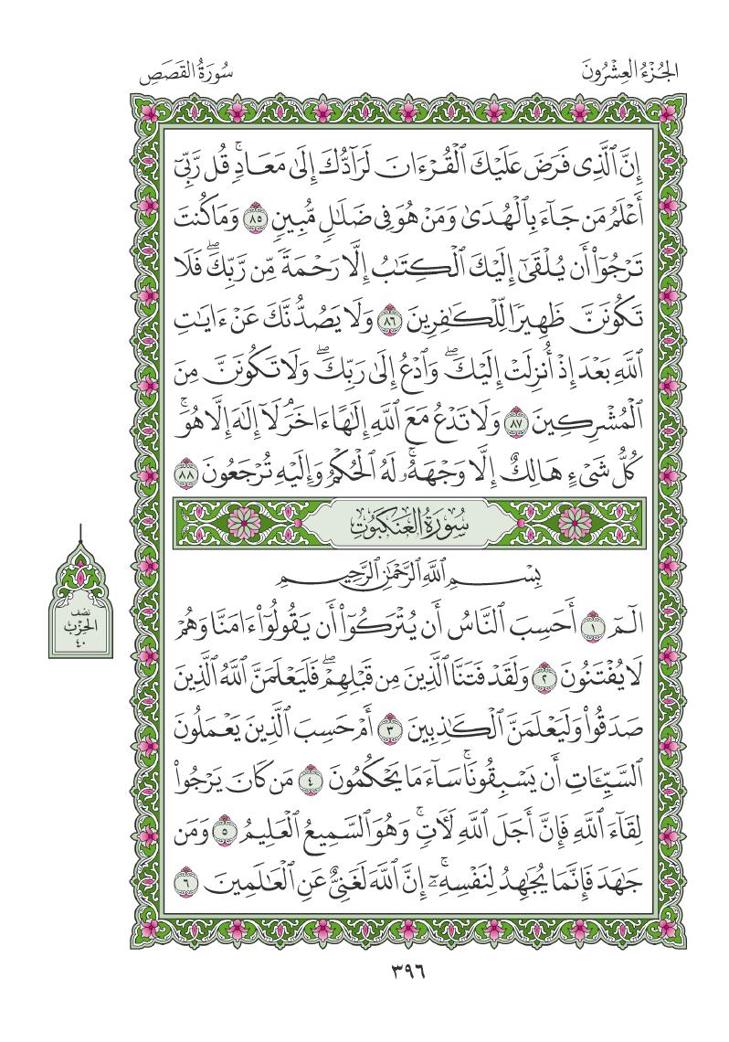 (Pg#396 Ayahs: 28:85 - 29:6)
