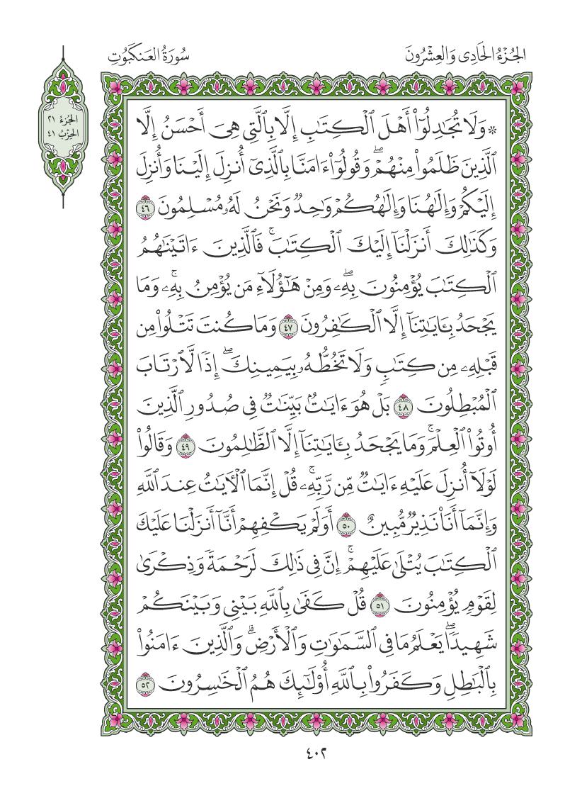 (Pg#402 Ayahs: 29:46 - 29:52)