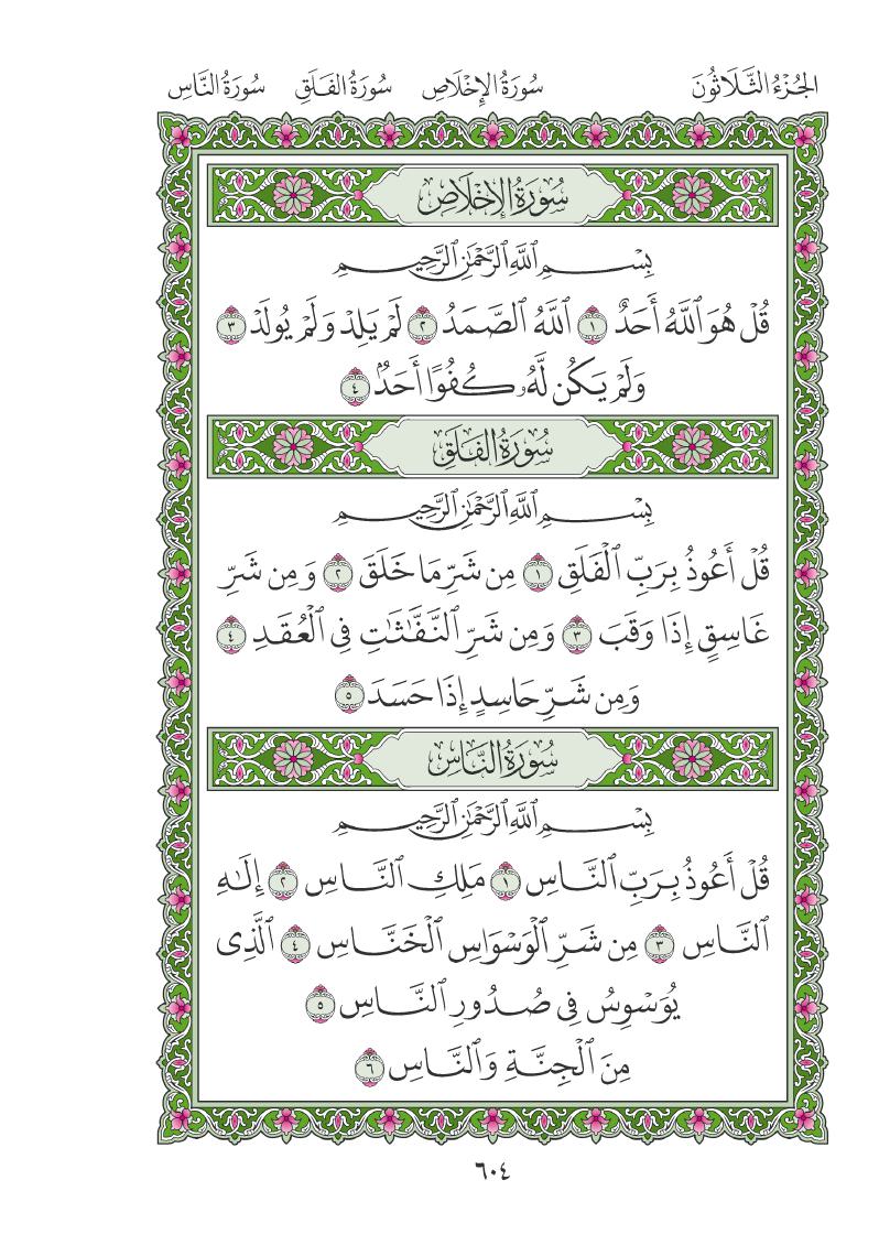 (Pg#604 Ayahs: 112:1 - 114:6)