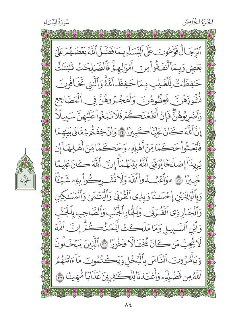 (Pg#84 Ayahs: 4:34 - 4:37)