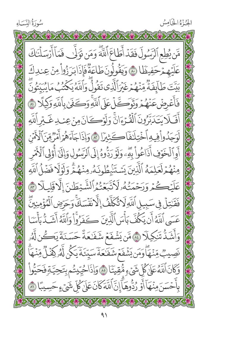 (Pg#91 Ayahs: 4:80 - 4:86)