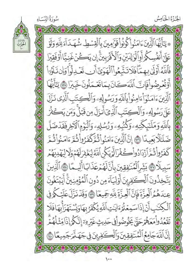 (Pg#100 Ayahs: 4:135 - 4:140)