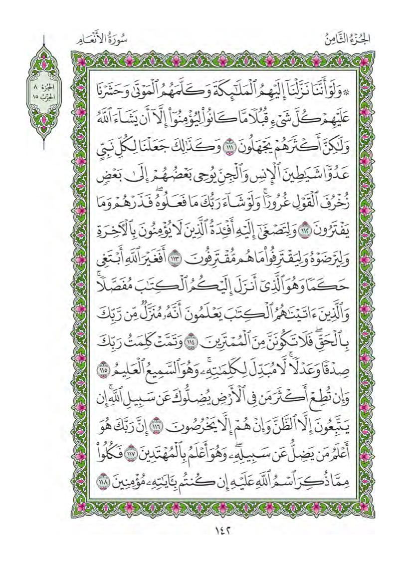 (Pg#142 Ayahs: 6:111 - 6:118)