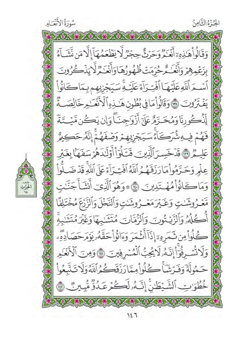 (Pg#146 Ayahs: 6:138 - 6:142)
