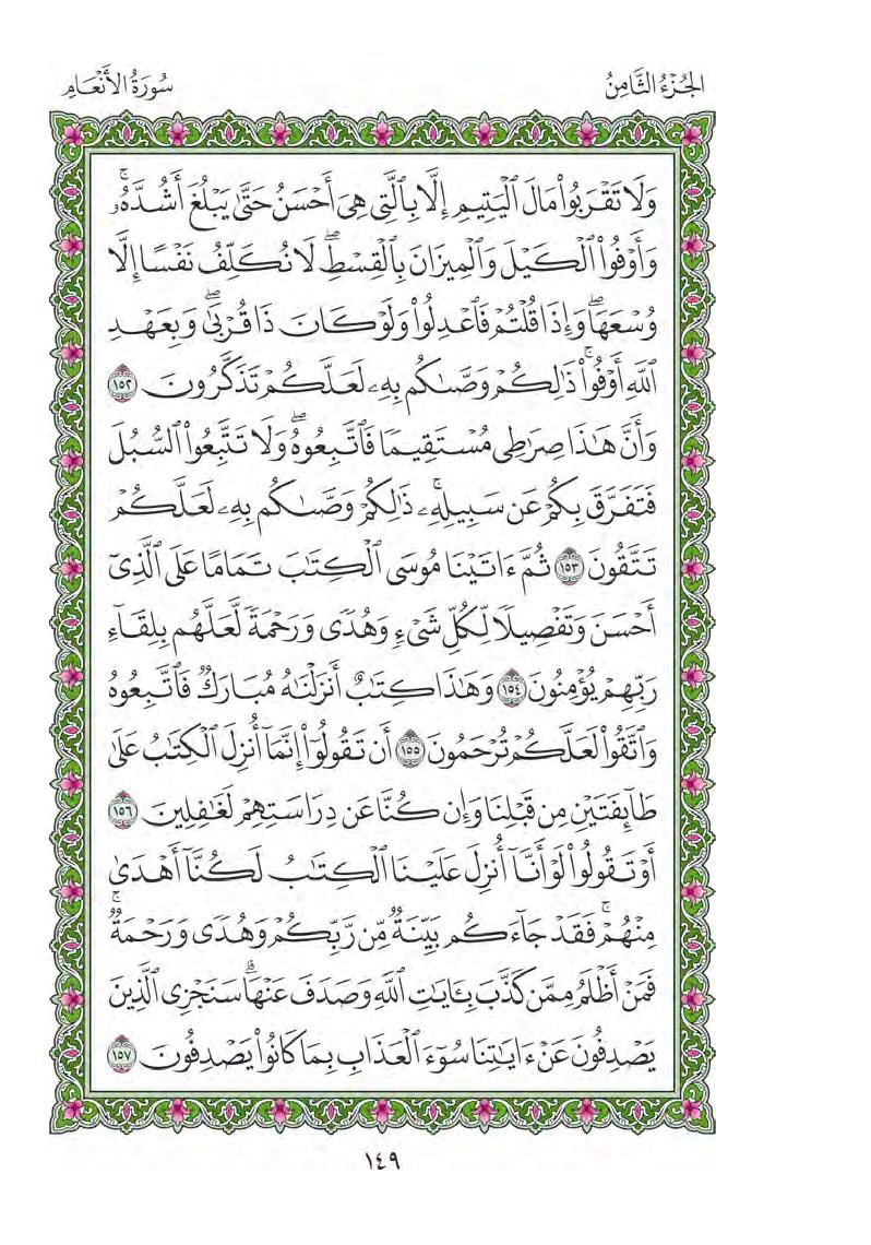 (Pg#149 Ayahs: 6:152 - 6:157)