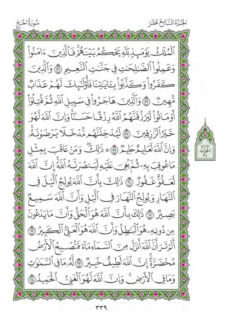 (Pg#339 Ayahs: 22:56 - 22:64)