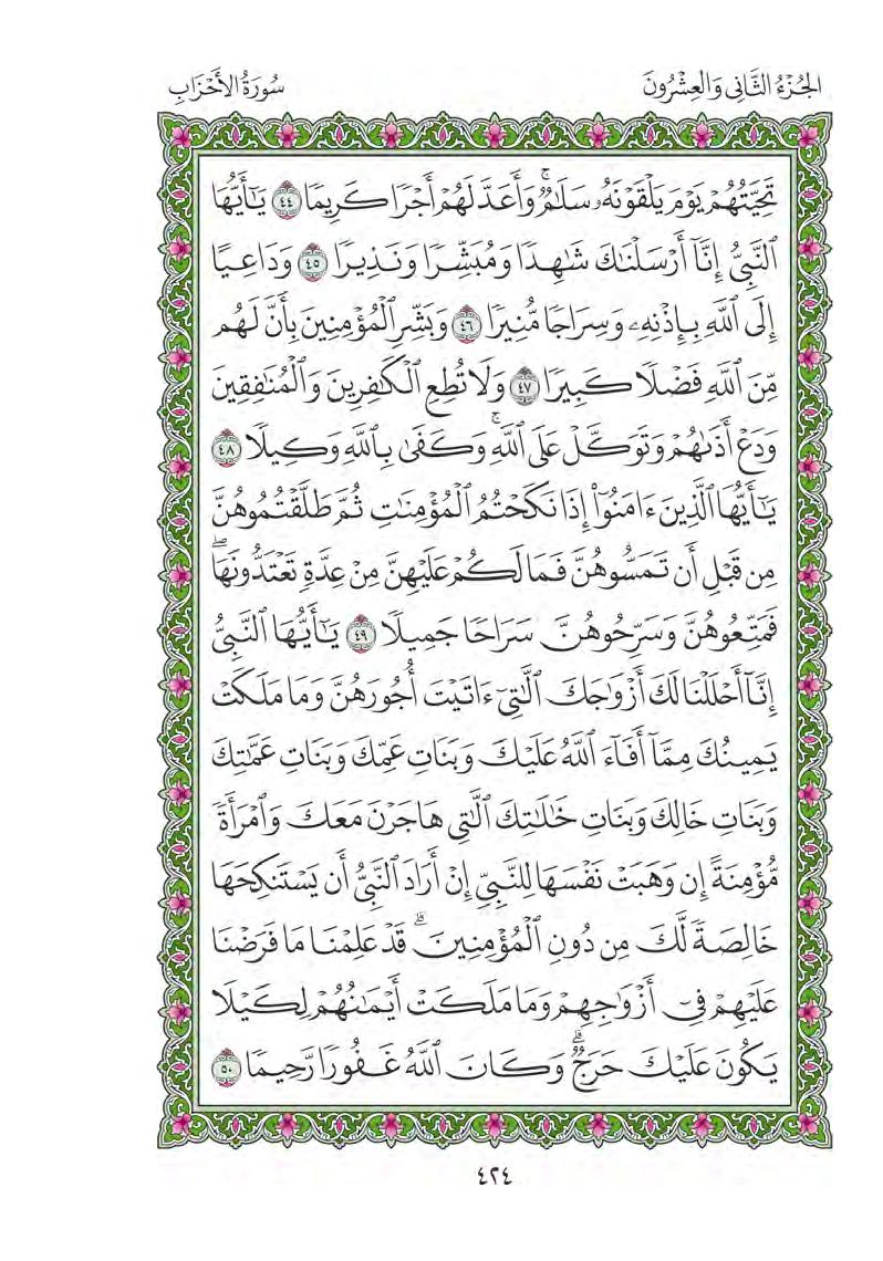 (Pg#424 Ayahs: 33:44 - 33:50)
