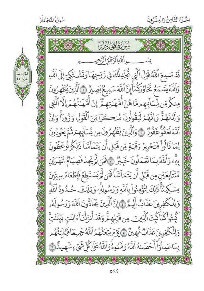 (Pg#542 Ayahs: 58:1 - 58:6)