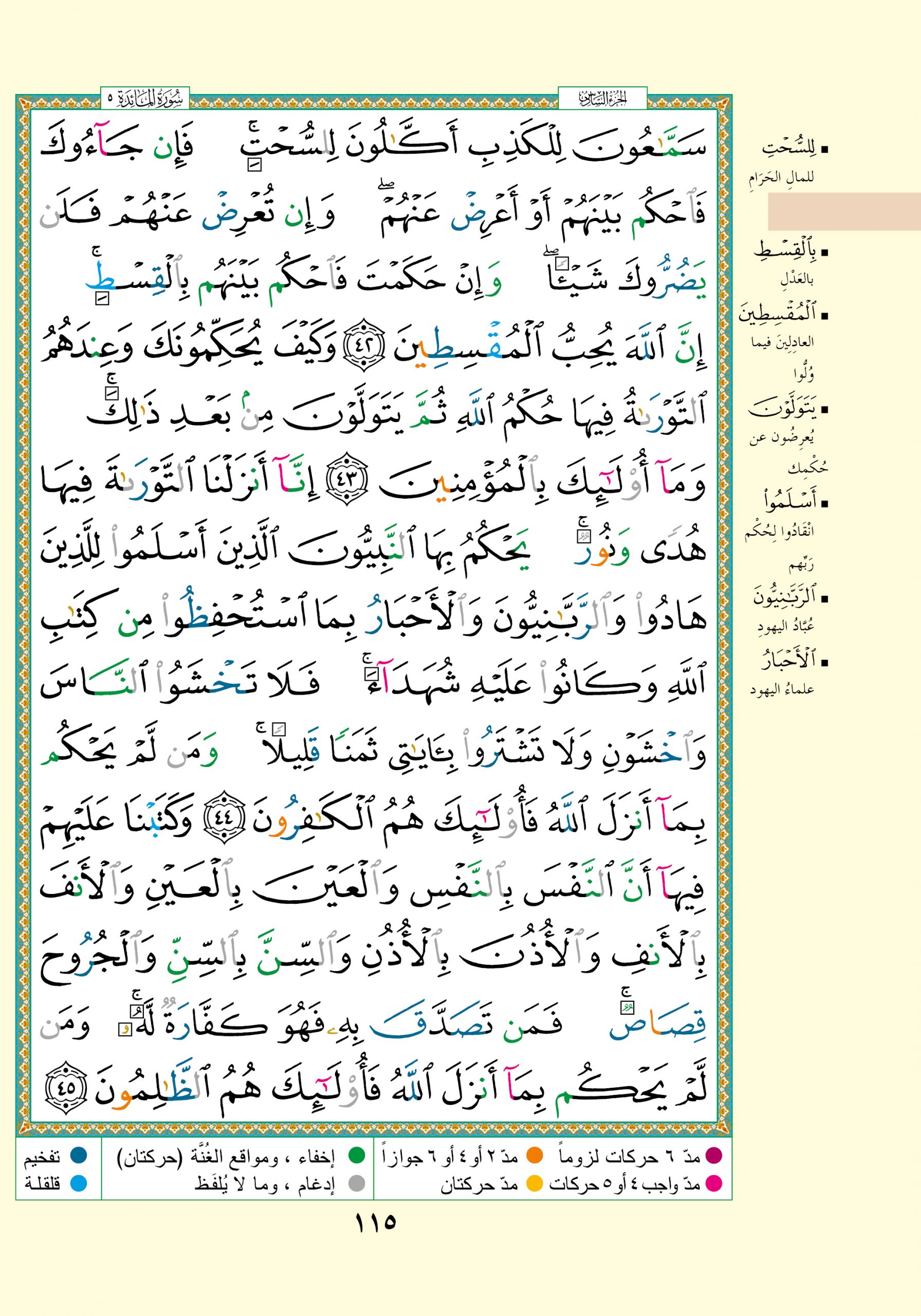 (Pg#115 Ayahs: 5:42 - 5:45)