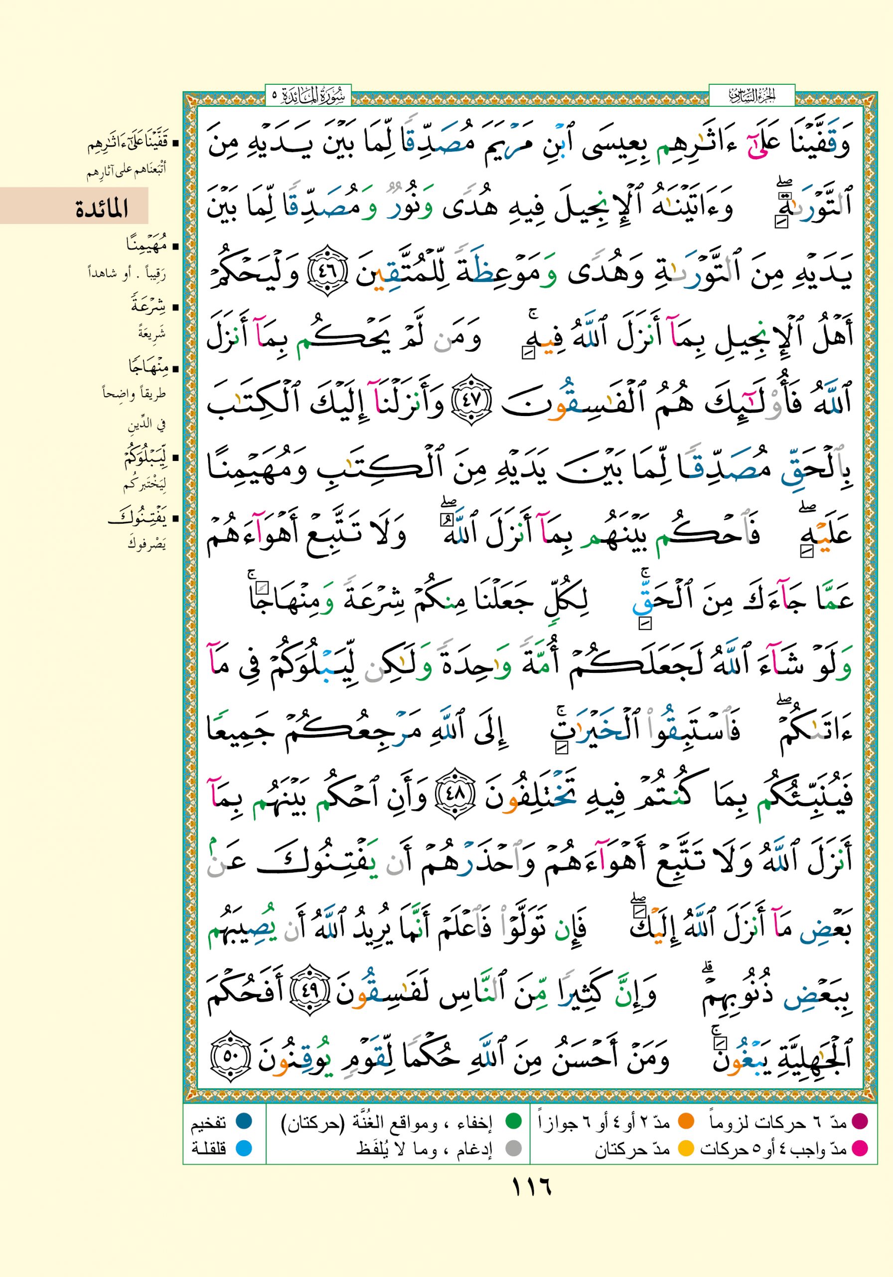 (Pg#116 Ayahs: 5:46 - 5:50)