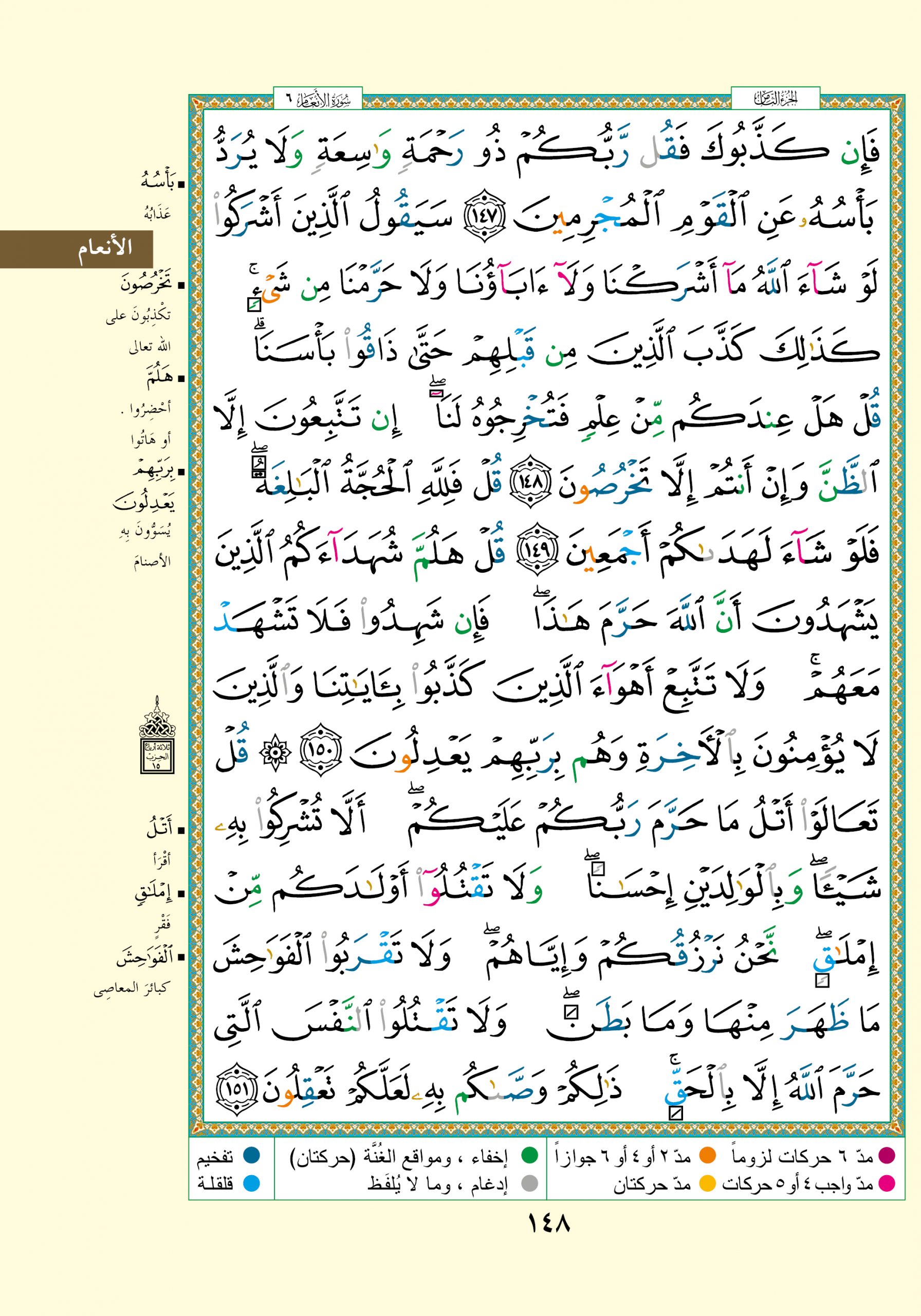 (Pg#148 Ayahs: 6:147 - 6:151)