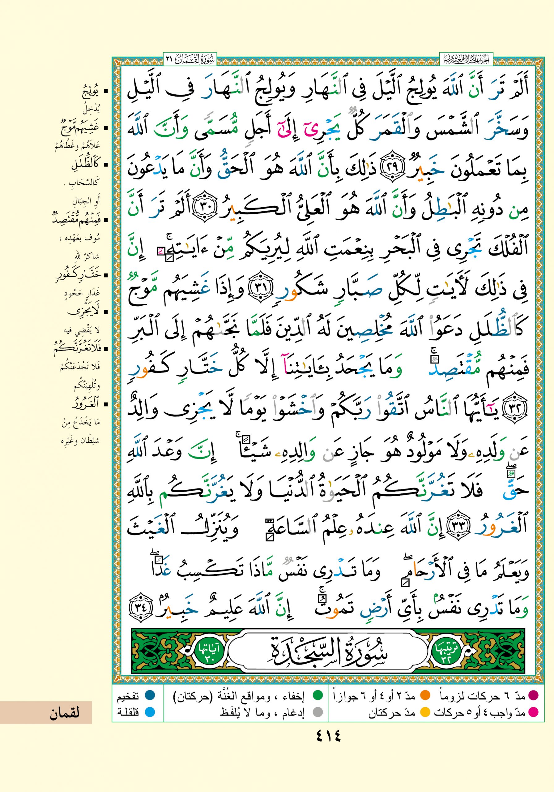 (Pg#414 Ayahs: 31:29 - 31:34)