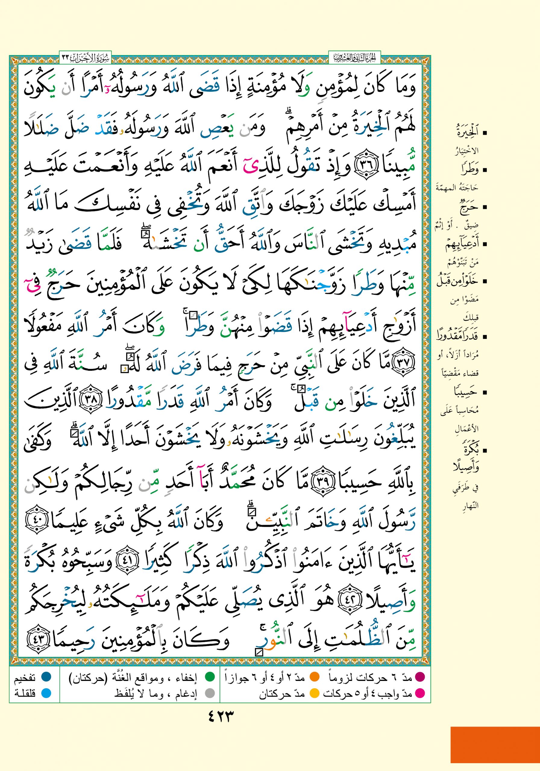 (Pg#423 Ayahs: 33:36 - 33:43)