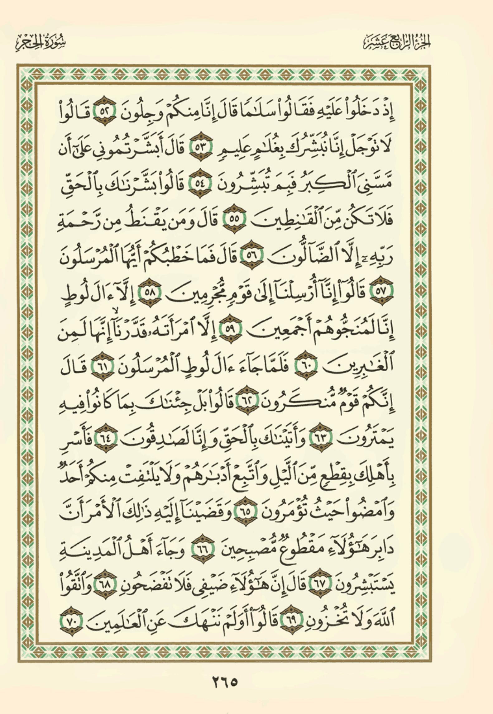 (Pg#265 Ayahs: 15:52 - 15:70)