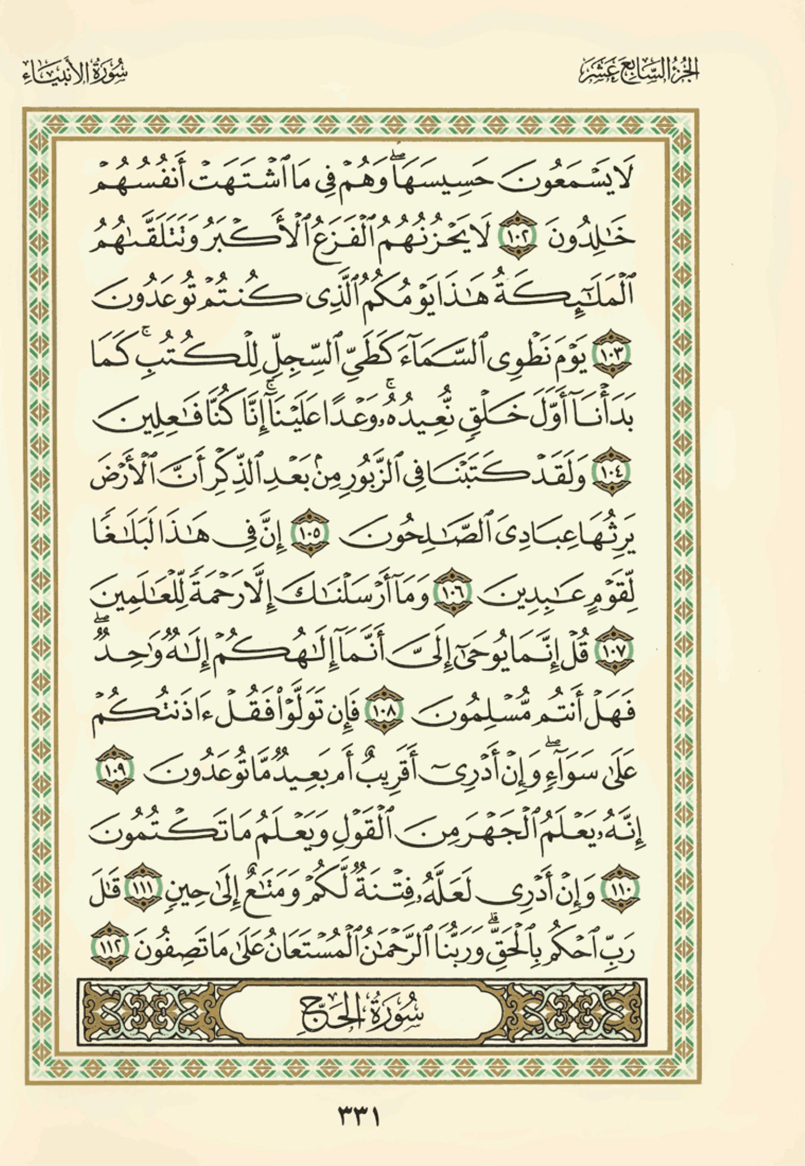 (Pg#331 Ayahs: 21:102 - 21:112)