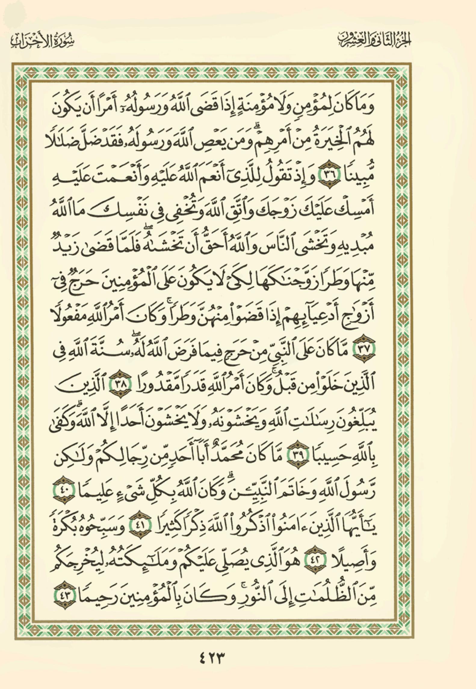 (Pg#423 Ayahs: 33:36 - 33:43)