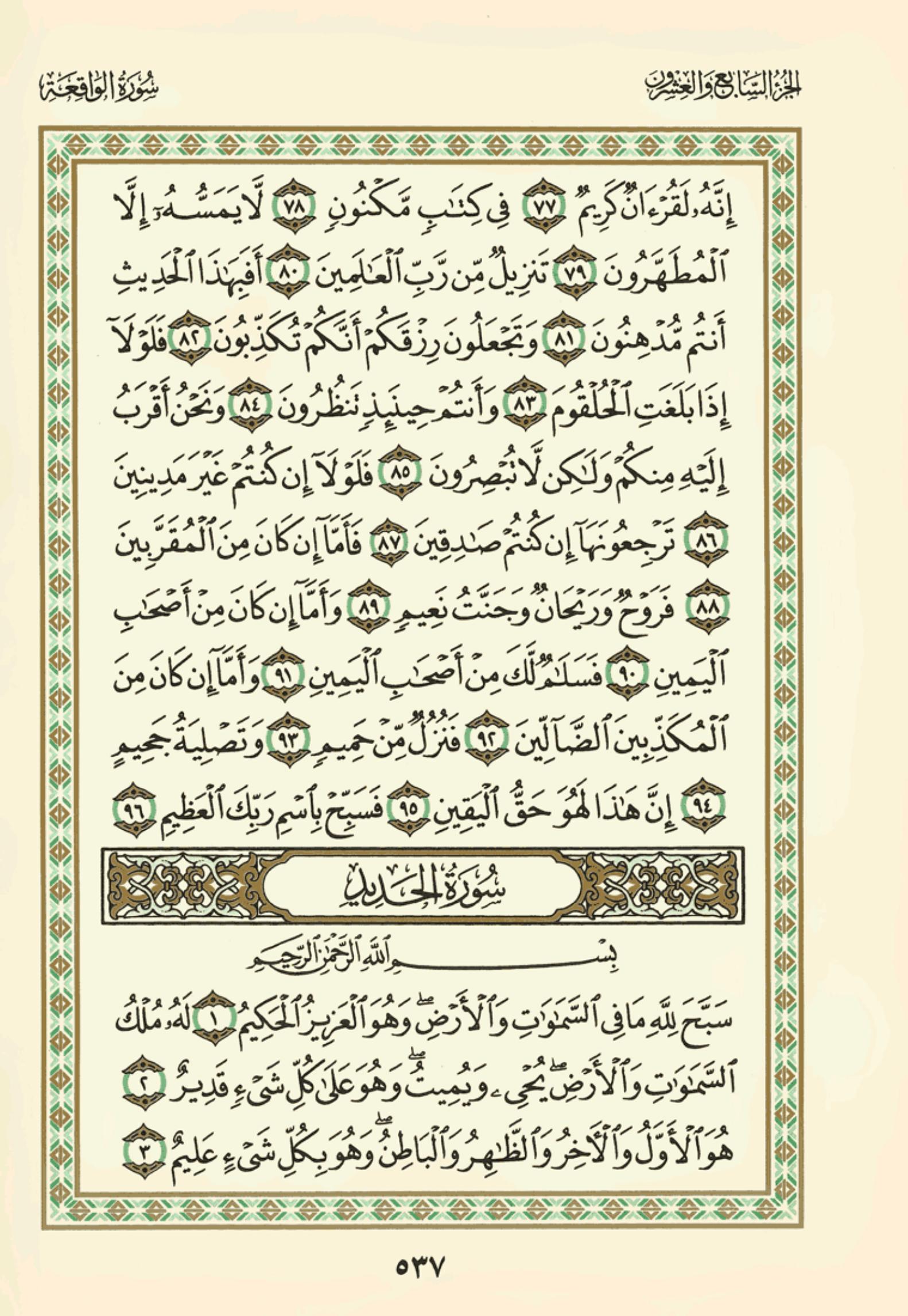 (Pg#537 Ayahs: 56:77 - 57:3)