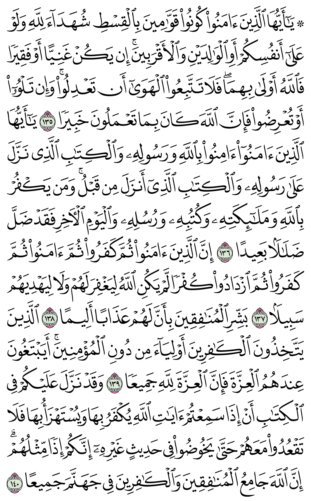 (Pg#100 Ayahs: 4:135 - 4:140)