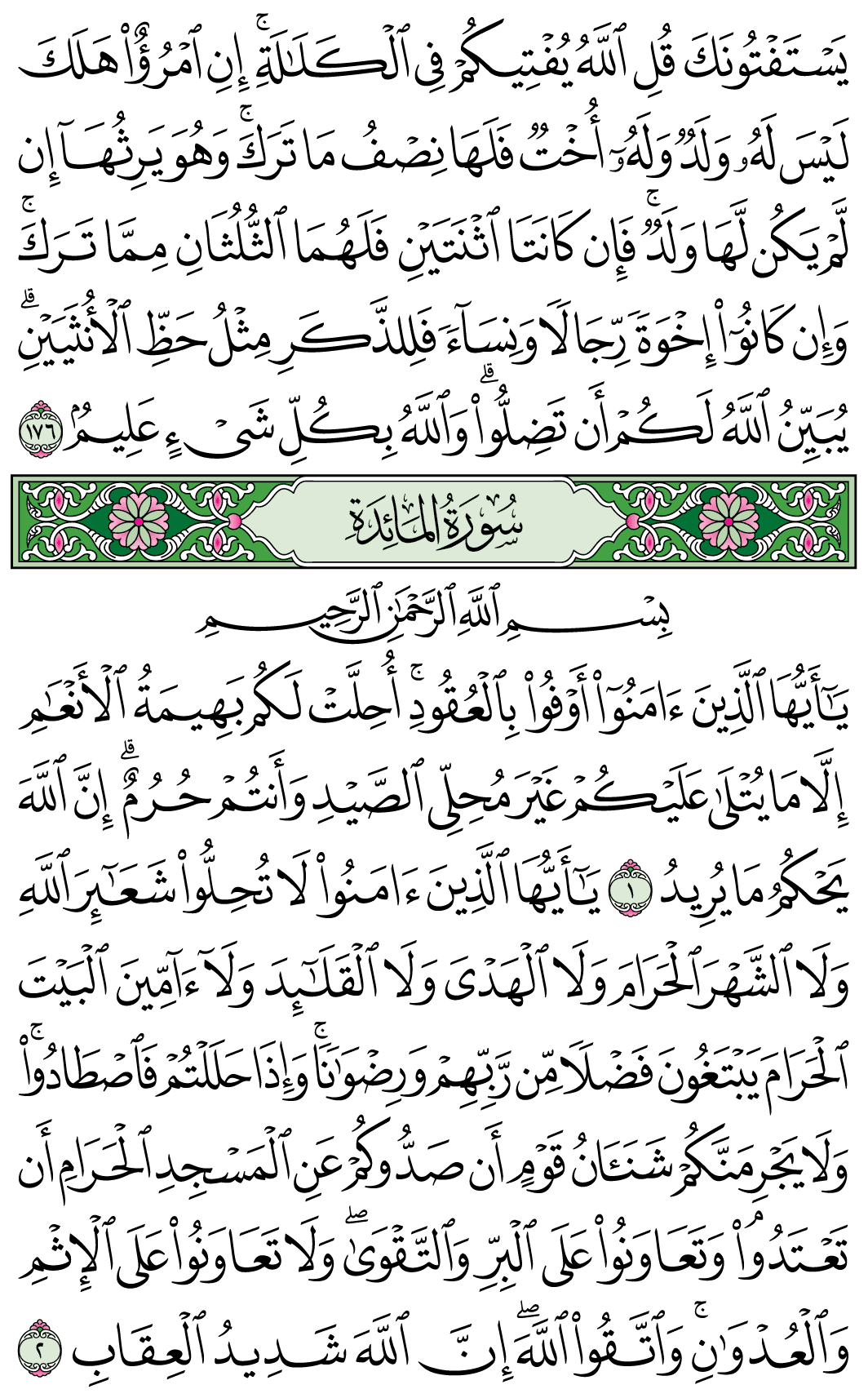 (Pg#106 Ayahs: 4:176 - 5:2)