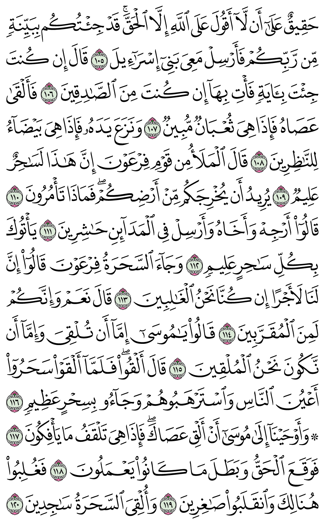(Pg#164 Ayahs: 7:105 - 7:120)