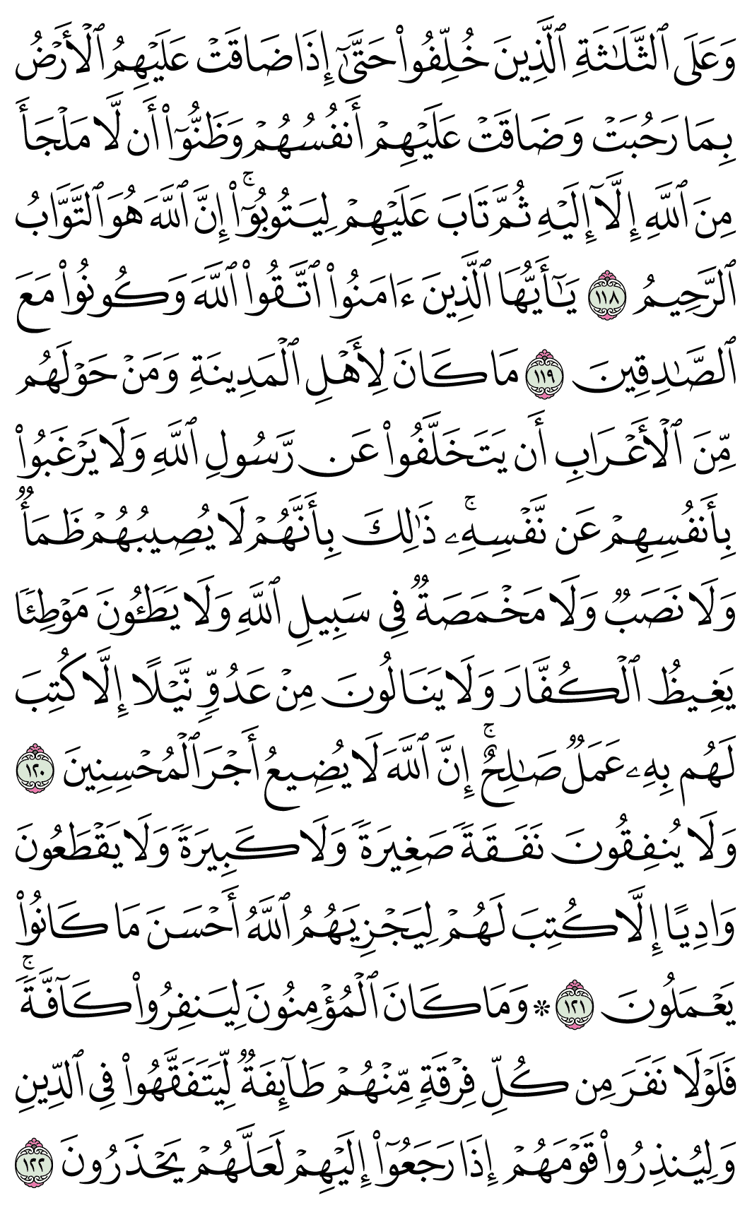 (Pg#206 Ayahs: 9:118 - 9:122)
