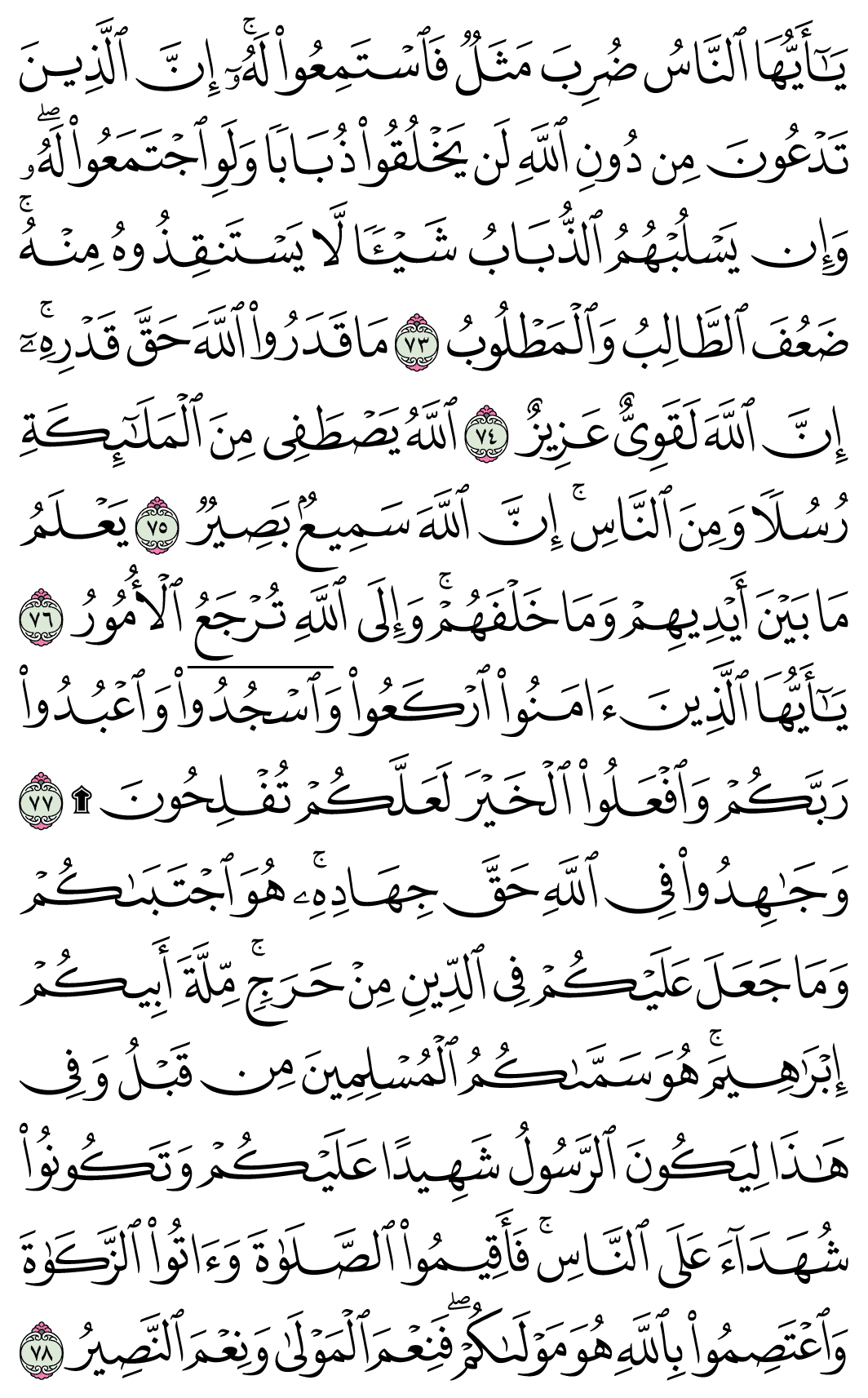 (Pg#341 Ayahs: 22:73 - 22:78)