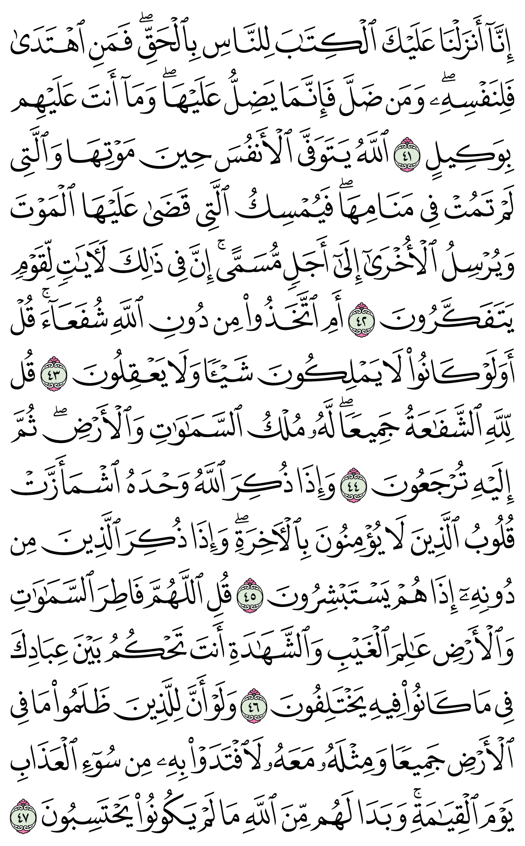 (Pg#463 Ayahs: 39:41 - 39:47)
