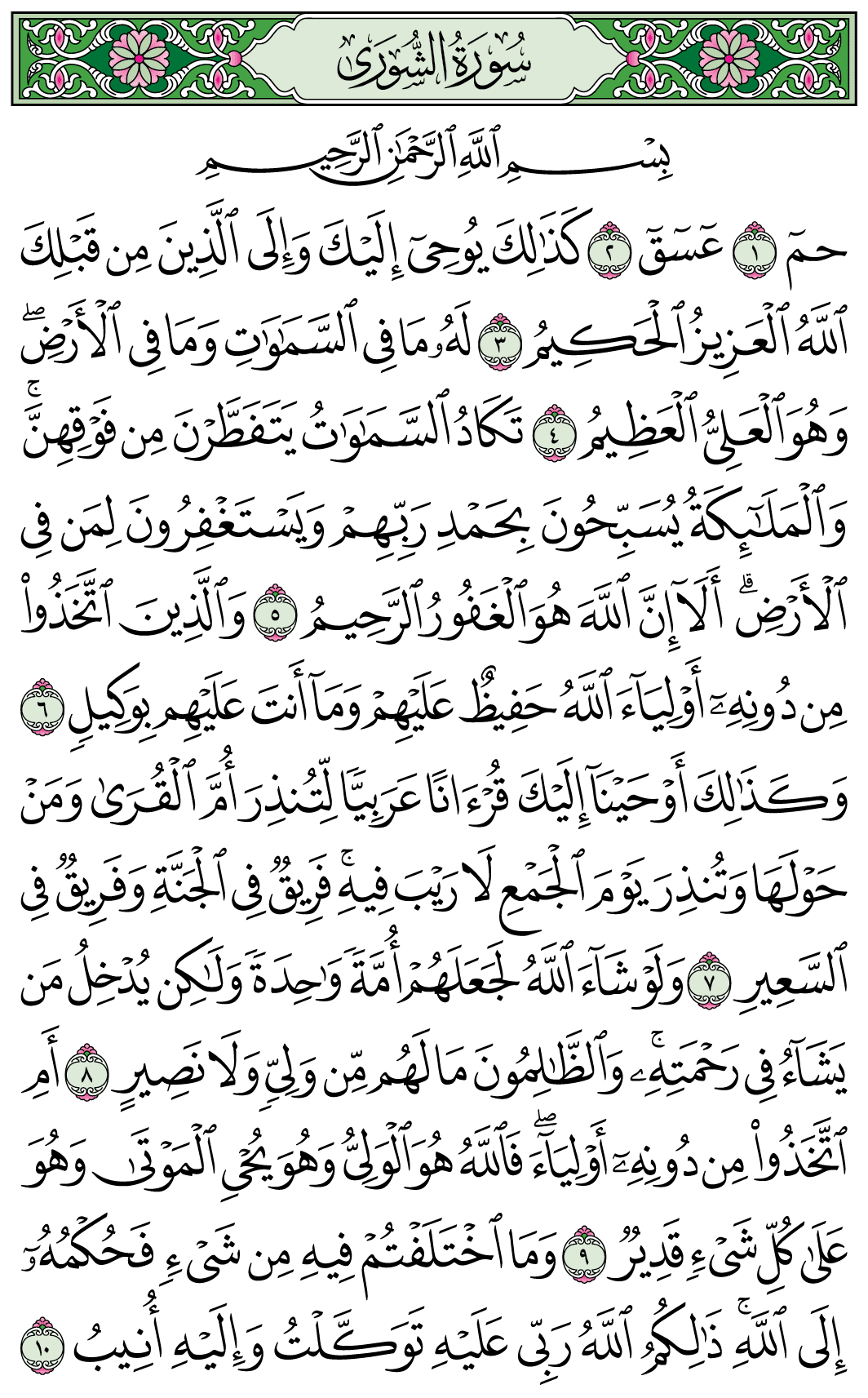 (Pg#483 Ayahs: 42:1 - 42:10)
