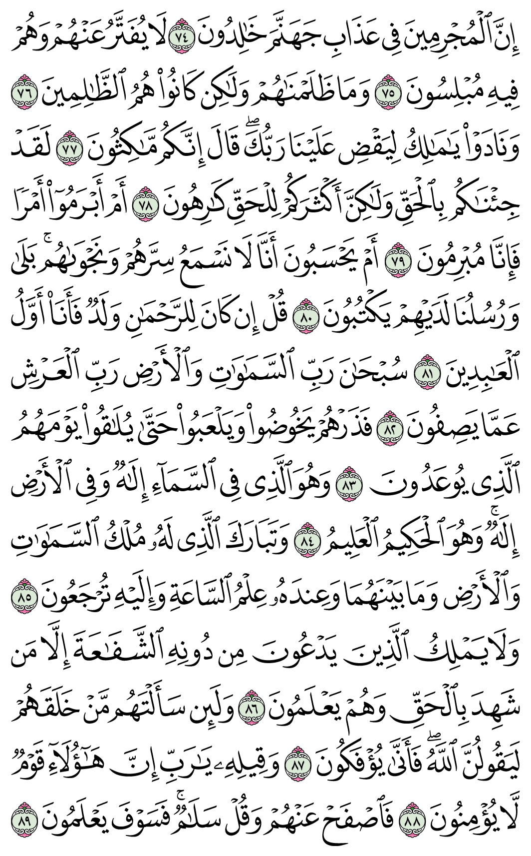 (Pg#495 Ayahs: 43:74 - 43:89)