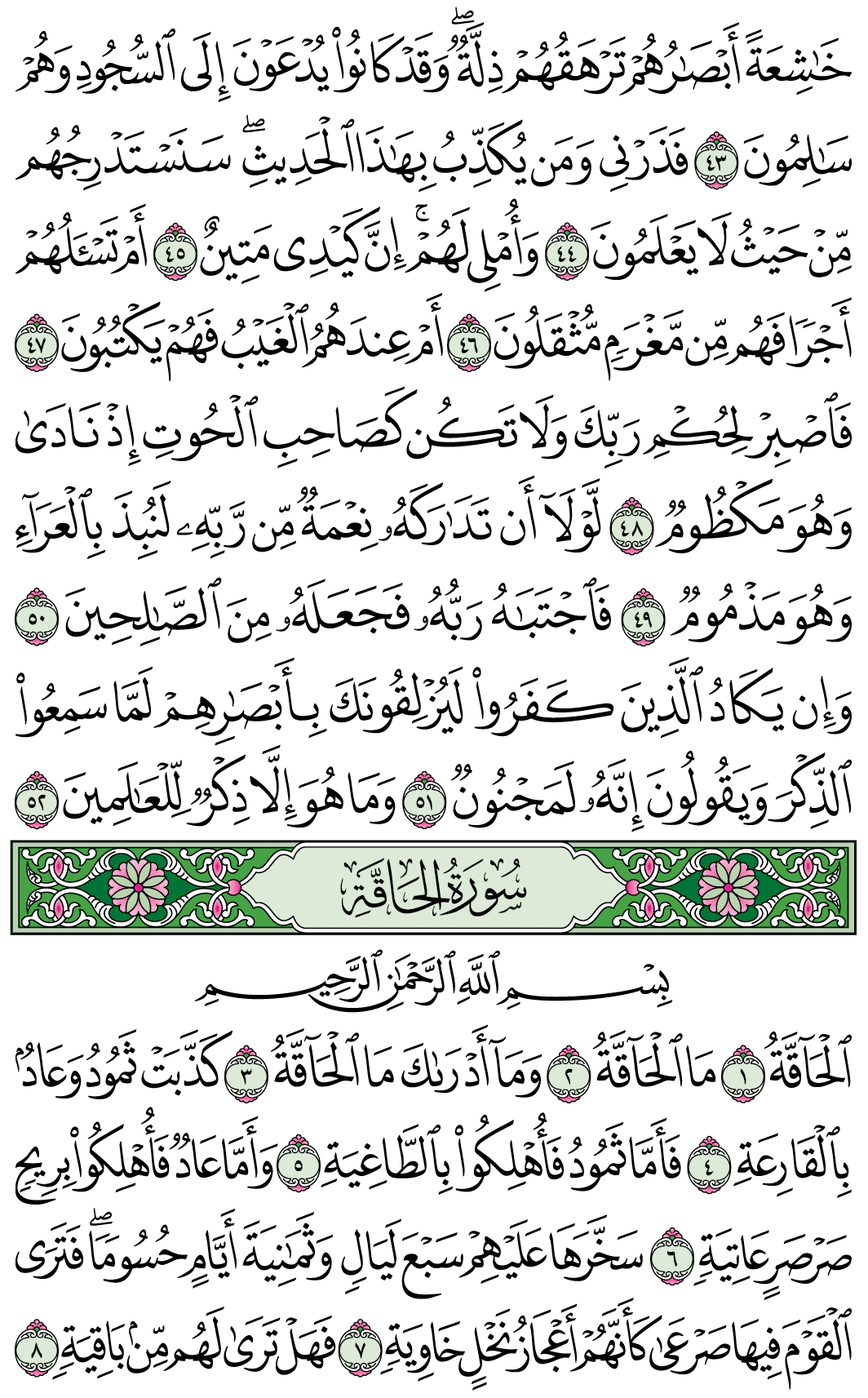(Pg#566 Ayahs: 68:43 - 69:8)