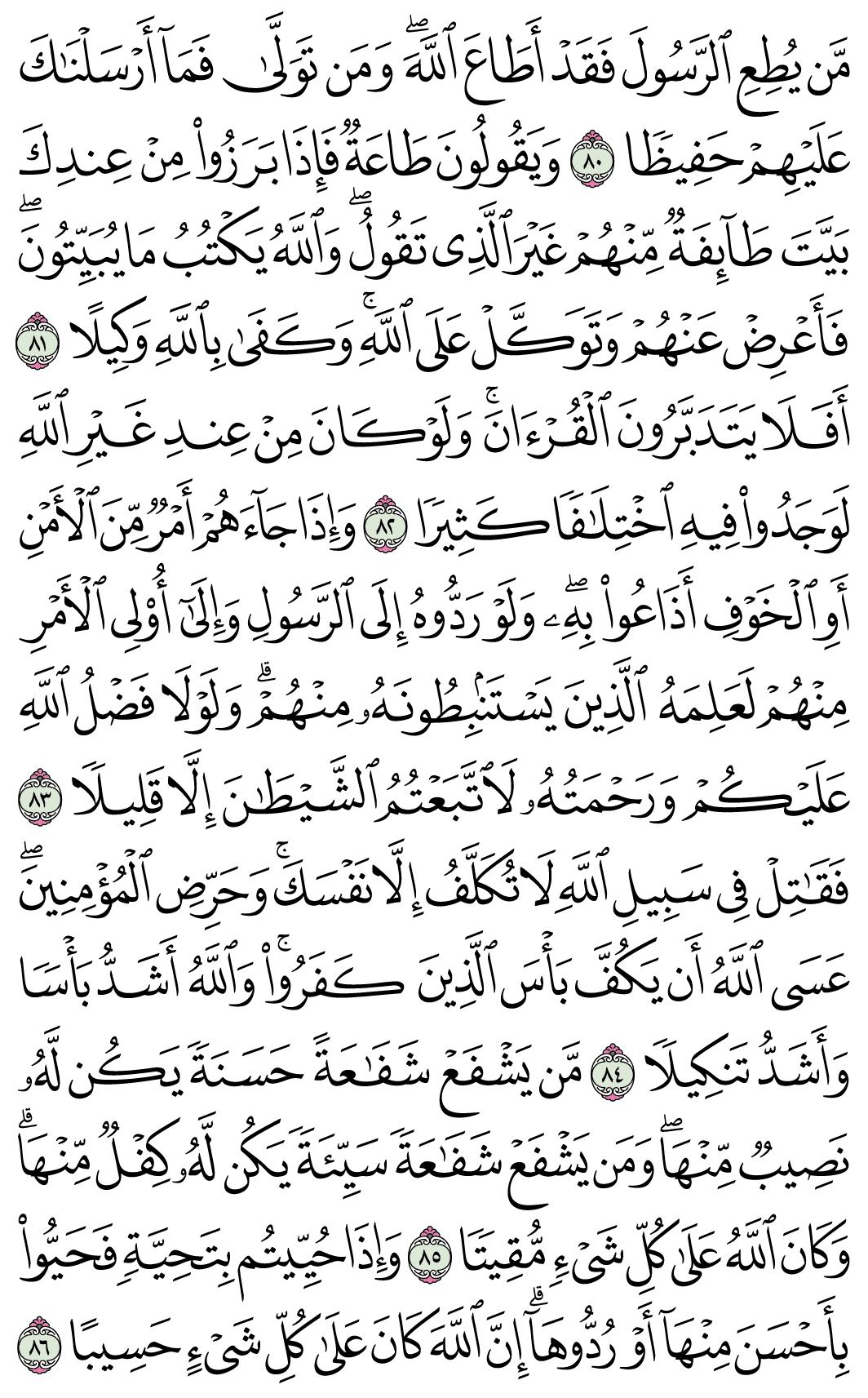 (Pg#91 Ayahs: 4:80 - 4:86)