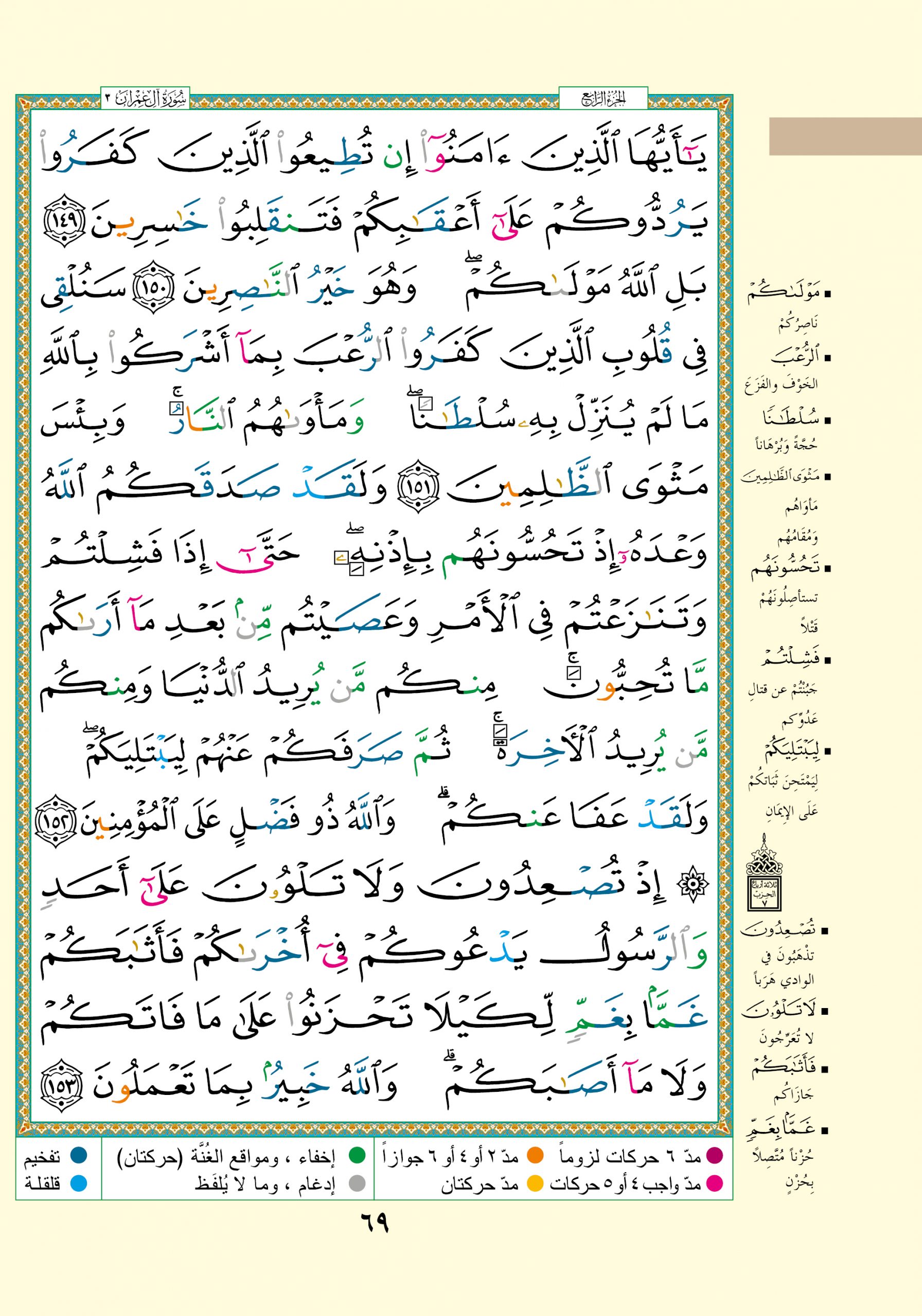 Tajweed rules preview for 3:153:1