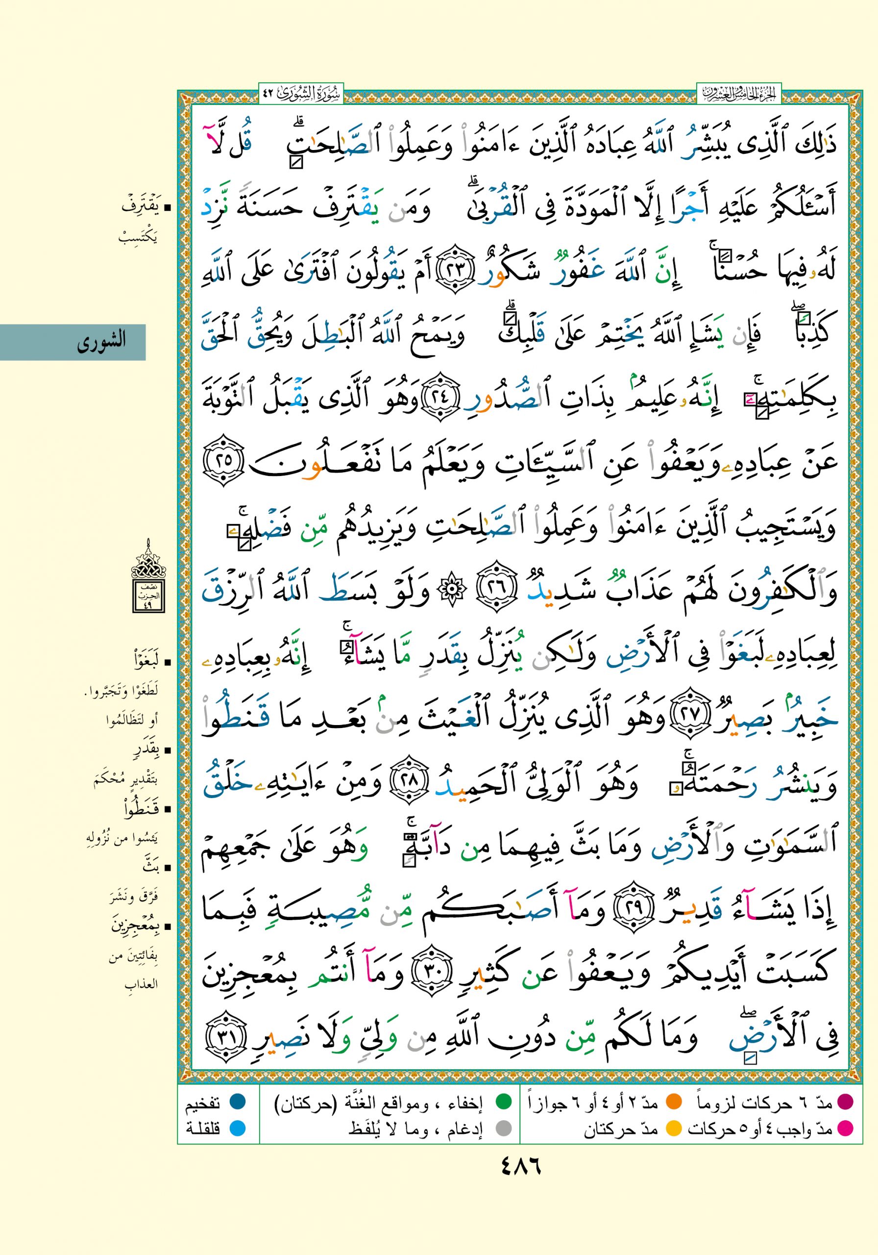 Tajweed rules preview for 42:23:5