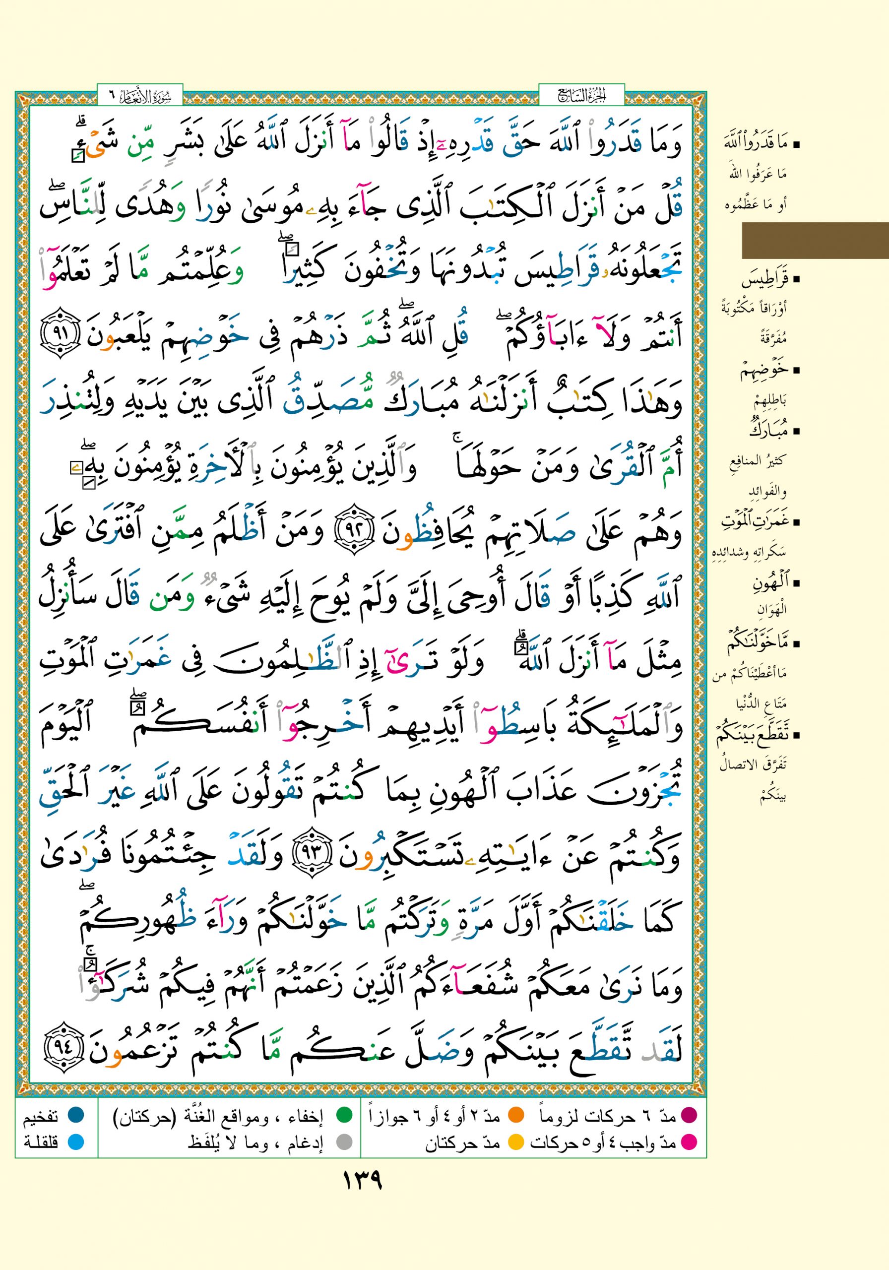Tajweed rules preview for 6:91:12