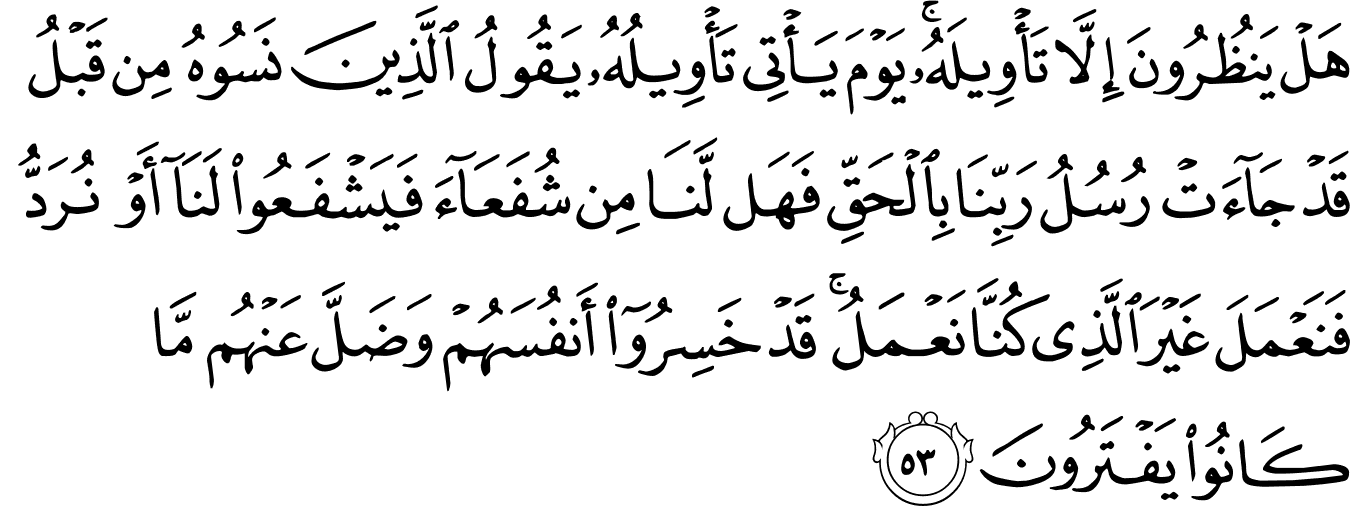 | 7:53:7 | تَاۡوِيۡلُهٗ | تَاْوِیْلُهٗ | تَاْوِیْلُهٗ | تَاْوِيْلُهٗ | تَاْوِيْلُهٗ | تَأْوِيلُهُۥ | تاويله | تَأْوِيلُهُۥ | ﭣ | تَأْوِيلُهُۥ | تَأْوِيلُهُ | تاويله | تَأۡوِيلُهُۥ |