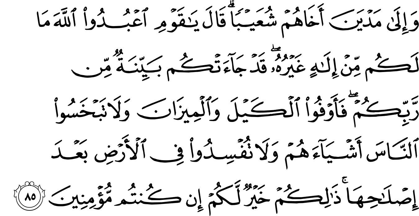 | 7:85:33 | خَيۡرٌ | خَیْرٌ | خَیْرٌ | خَيْرٌ | خَيْرٌ | خَيْرٌۭ | خيرۭ | خَيْرࣱ | ﮖ | خَيْرࣱ | خَيْرٌ | خير | خَيۡرٞ |