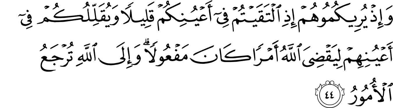 | 8:44:8 | وَّيُقَلِّلُكُمۡ | وَّیُقَلِّلُكُمْ | وَّیُقَلِّلُكُمْ | وَّيُقَلِّلُكُمْ | وَّيُقَلِّلُكُمْ | وَيُقَلِّلُكُمْ | ويقللكم | وَيُقَلِّلُكُمْ | ﯛ | وَيُقَلِّلُكُمْ | وَيُقَلِّلُكُمْ | ويقللكم | وَيُقَلِّلُكُمۡ |