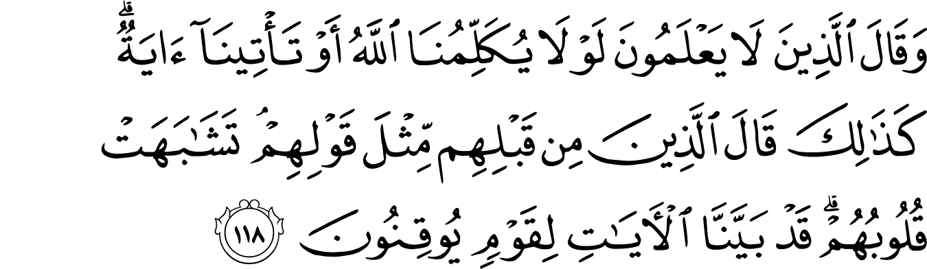 | 2:118:1 | وَقَالَ | وَقَالَ | وَقَالَ | وَقَالَ | وَقَالَ | وَقَالَ | وَقَالَ | ﯣ | وَقَالَ | وَقَالَ | وَقَالَ | وَقَالَ | ﲲ | ﲲ |