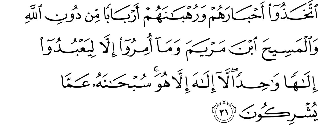 | 9:31:8 | وَالۡمَسِيۡحَ | وَالْمَسِیْحَ | وَالْمَسِیْحَ | وَالْمَسِيْحَ | وَالْمَسِيْحَ | وَٱلْمَسِيحَ | والمسيح | وَٱلْمَسِيحَ | ﯟ | وَٱلْمَسِيحَ | وَالْمَسِيحَ | والمسيح | وَٱلۡمَسِيحَ |