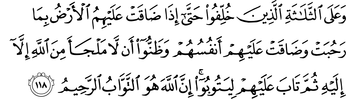 | 9:118:2 | الثَّلٰثَةِ | الثَّلٰثَةِ | الثَّلٰثَةِ | الثَّلٰثَةِ | الثَّلٰثَةِ | ٱلثَّلَـٰثَةِ | الثلـثة | ٱلثَّلَٰثَةِ | ﭒ | ٱلثَّلَٰثَةِ | الثَّلَاثَةِ | الثلاثة | ٱلثَّلَٰثَةِ |
