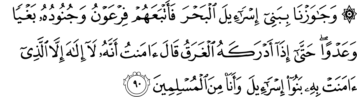 | 10:90:1 | ۞ وَجَاوَزۡنَا | وَجٰوَزْنَا | وَجٰوَزْنَا | وَجٰوَزْنَا | وَجٰوَزْنَا | ۞ وَجَـٰوَزْنَا | ۞وَجَٰوَزْنَا | ﭝﭞ | ۞وَجَٰوَزْنَا | ۞ وَجَاوَزْنَا | ۞ وَجَٰوَزۡنَا |