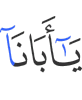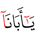 | 12:81:5 | يٰۤاَبَانَاۤ | یٰۤاَبَانَاۤ | یٰۤاَبَانَاۤ | يٰ٘اَبَانَا٘ | يٰٓاَبَانَا͏ٓ | يَـٰٓأَبَانَآ | يـابانا | يَٰٓأَبَانَآ | ﮌ | يَٰٓأَبَانَآ | يَا أَبَانَا | يا ابانا | يَٰٓأَبَانَآ |