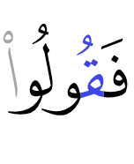 | 12:81:4 | فَقُوۡلُوۡا | فَقُوْلُوْا | فَقُوْلُوْا | فَقُوْلُوْا | فَقُوْلُوْا | فَقُولُوا۟ | فقولوا۟ | فَقُولُوا۟ | ﮋ | فَقُولُوا۟ | فَقُولُوا | فقولوا | فَقُولُواْ |